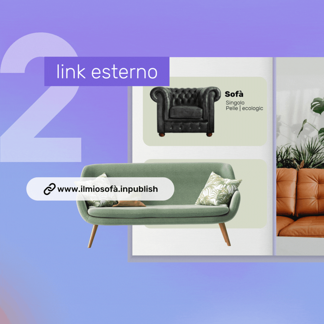Esempio d’uso: Se promuovi un sofà, collega il link esterno alla scheda prodotto sul tuo e-commerce. L’utente potrà acquistarlo in pochi secondi e poi ritornare alla tua pubblicazione.