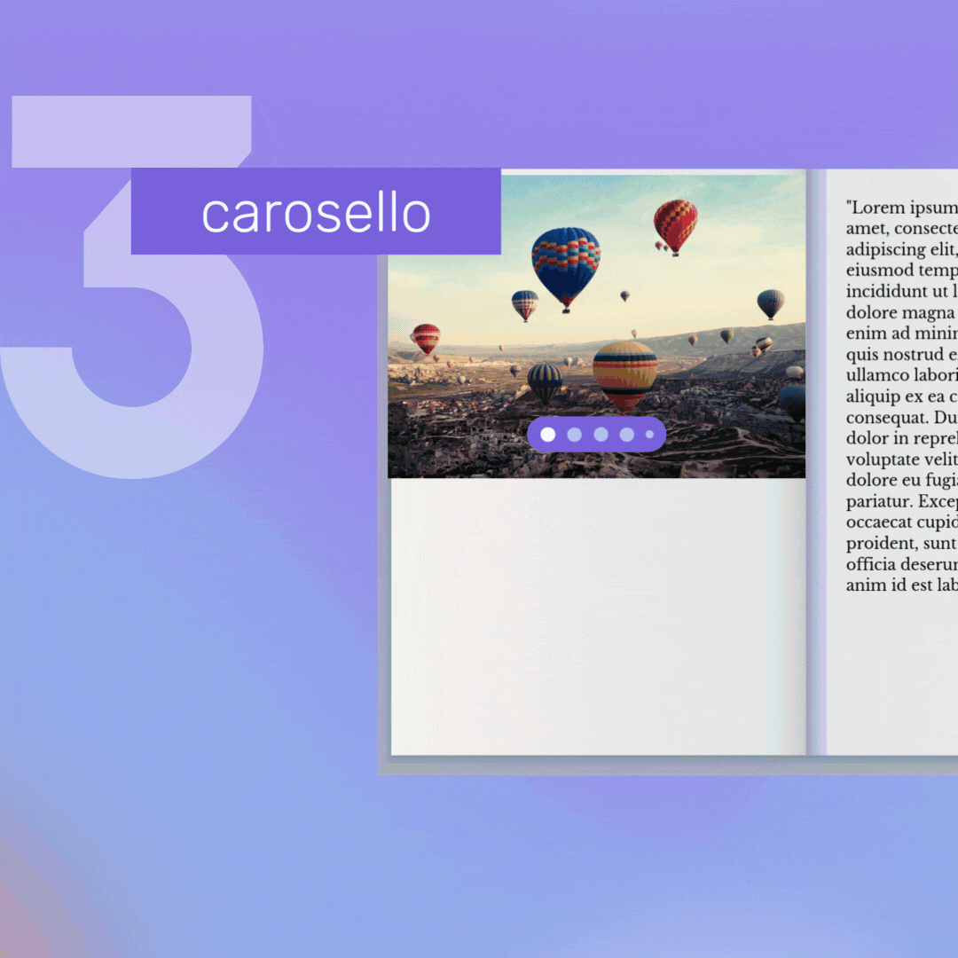 Esempio d’uso: Stai promuovendo una serie di destinazioni turistiche? Usa il carosello per presentare diverse località, da spiagge paradisiache a mete culturali, offrendo agli utenti una gamma di possibilità.