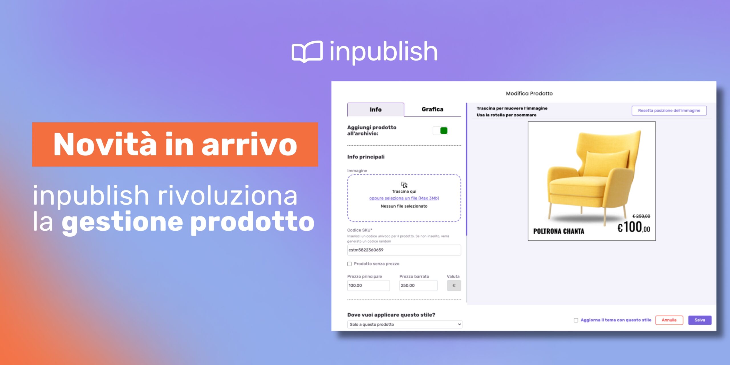 Presto online la nuova gestione prodotti di Inpublish. La piattaforma si prepara a lanciare un aggiornamento strategico pensato per chi crea volantini e cataloghi digitali. In arrivo una scheda prodotto completamente riprogettata, che unirà informazioni e grafica in un’unica interfaccia con anteprima istantanea, riducendo errori e...